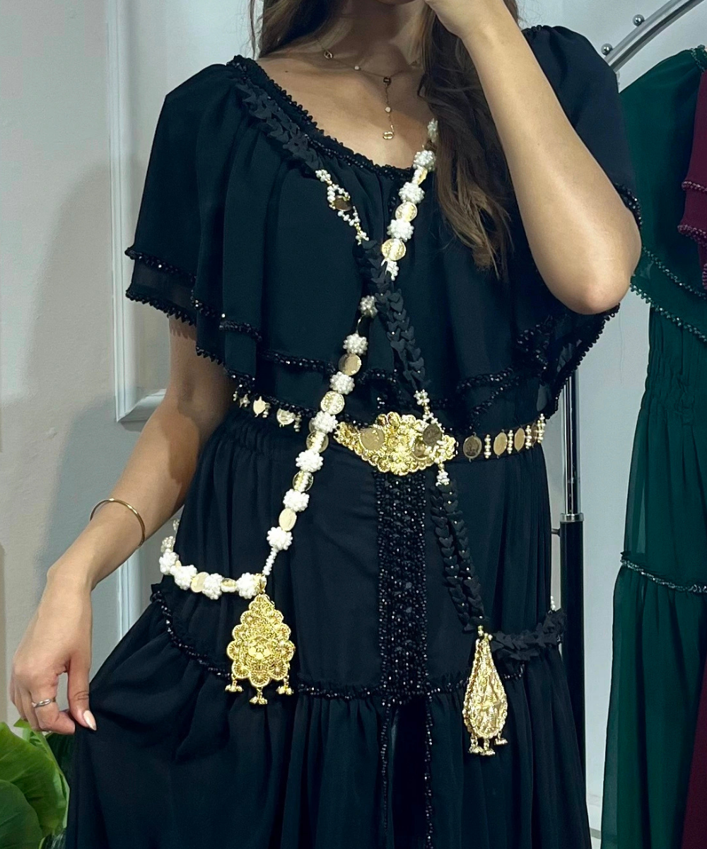 استوحي تصميم روبة نايلي من الإرث الثقافي الساحر لمنطقة الجلفة وبوسعادة، حيث تلتقي الأناقة البدوية بالفخامة العصرية. صممت خصيصًا للمرأة الجزائرية التي تعتز بجذورها وتحب أن تبرز أنوثتها بأسلوب راقٍ ومحتشم.
